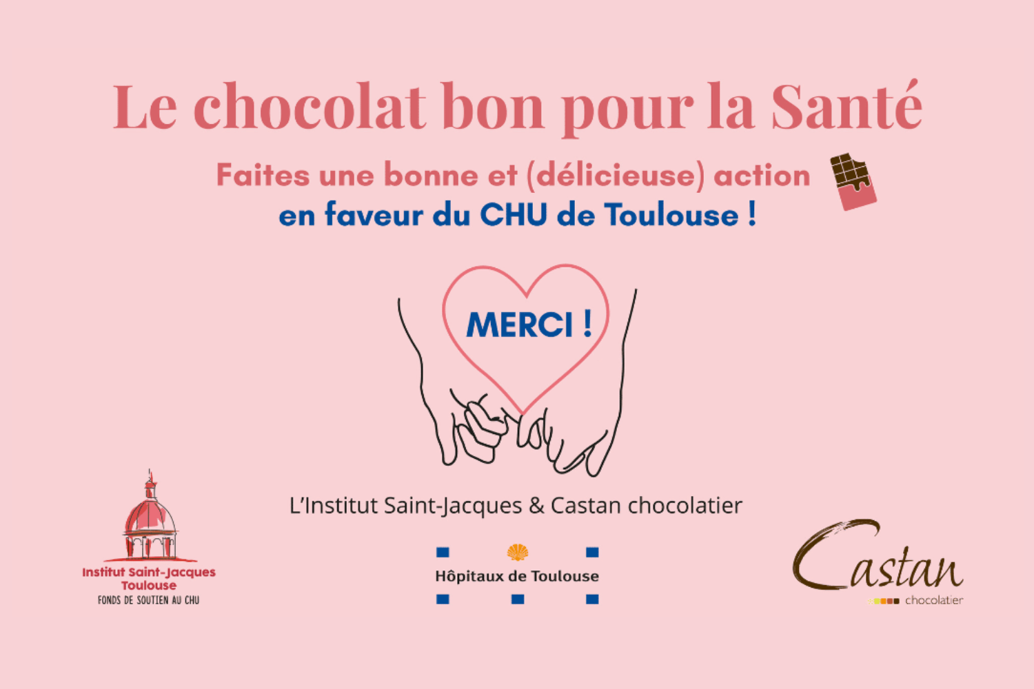 L’ISJ lance en effet une vente solidaire de coffrets de chocolats, confectionnés par l’artisan chocolatier toulousain Castan et dont les bénéfices seront reversés à l’ISJ, pour financer les projets en faveur du 1er CHU de France.